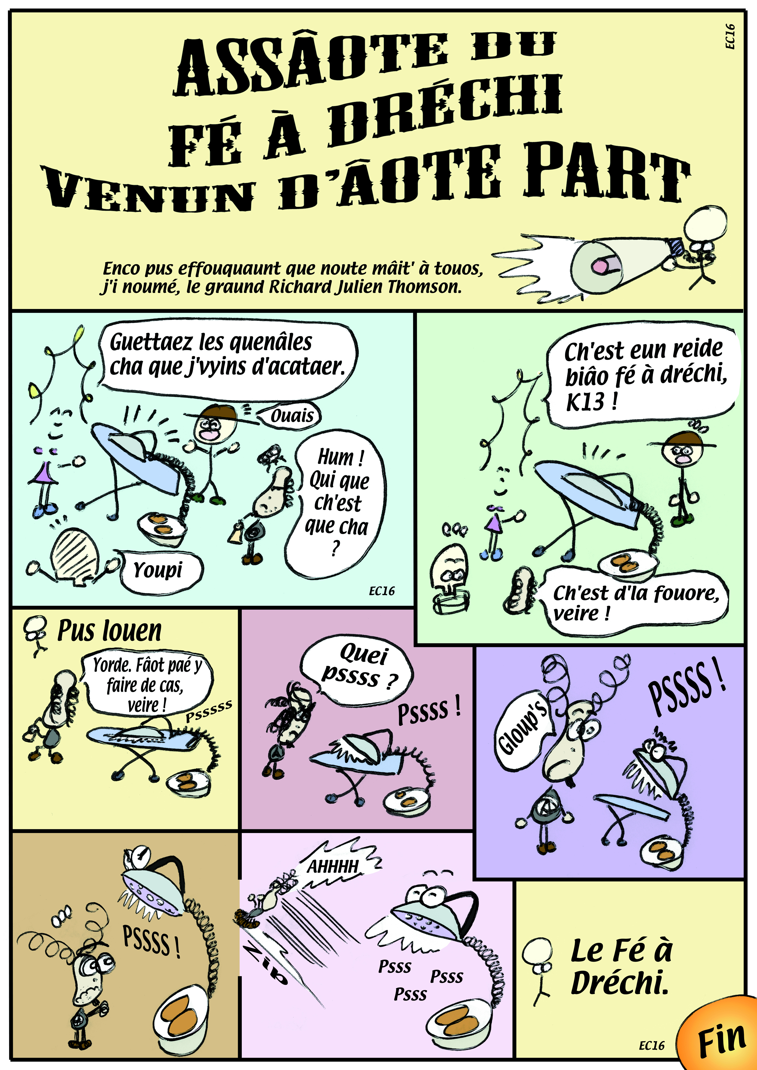 | Quelques BD à moi en Normand | Le fé à dreichi texte | Le fé à dreichi dessin |