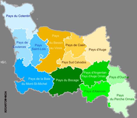 et certaines villes limitrophes avec le pays de Caux, la Mayenne et la Bretagne.